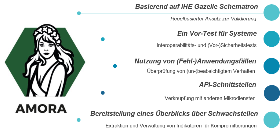 Unsere Forschungsgruppe entwickelte die AMORA-Interoperabilitätstestplattform im Rahmen des IDUNN-Projekts. AMORA basiert auf dem IHE-Gazelle-Framework und dient als Werkzeug vor der Implementierung für Forschung und Industrie. Es ermöglicht Interoperabilitätstests und Validierungen in Energiesystemen. Die Plattform validiert grundlegende Funktionen mit erweiterten API- und Schematron-Funktionen und integriert Merkmale wie Software Bill of Materials (SBOM), Kommunikationsprotokolle, Sicherheitsbewertungen und Indicators of Compromise (IOC).
