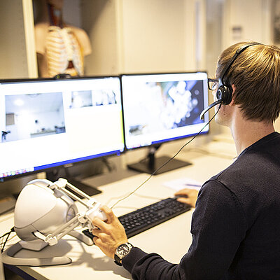 Im stationären Dienstzimmer gibt es zwei realistische Arbeitsplätze für Pflegekräfte zur Darstellung von Dokumentationsprozessen. Des Weiteren ist ein Medikamentenarbeitsplatz vorhanden, an dem die Tätigkeiten rund um das Stellen von Medikamenten unterstützt werden. Im Bereich des Leitstandes, der als Rettungsleitstelle oder Koordinationsstelle des ambulanten Dienstes fungiert, lässt sich an einer modernen, realitätsnahen Arbeitsumgebung die telepräsente Unterstützung von Pflegefachpersonen bei Patient*innen oder von Rettungsassistent*innen im Einsatz zeigen. Zur Ausstattung werden unter anderem große Monitore und verschiedene Eingabemodalitäten gehören (Tastaturen, Joysticks und vieles mehr).