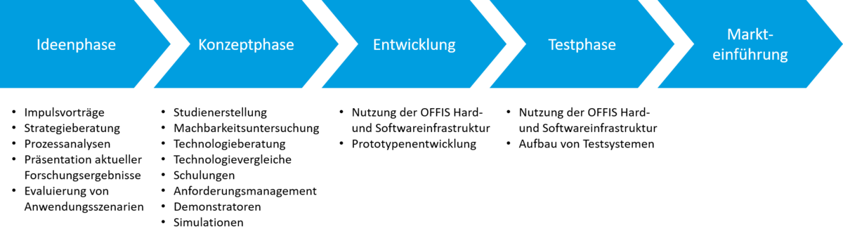 Unsere Partnerunternehmen profitieren dabei von der umfangreichen Wissensbasis der anwendungsnahen IKT-Forschung des OFFIS. Das Ziel jeder Kooperation ist es, den Innovationsprozess zu beschleunigen und gegenseitig von Synergieeffekten zu profitieren. Denn in Zeiten einer immer schneller voranschreitenden Wissensgenerierung mit immer komplexeren Produkten ist es kaum mehr möglich, alle Technologiekompetenzen in einer eigenen FuE-Abteilung zu bündeln.