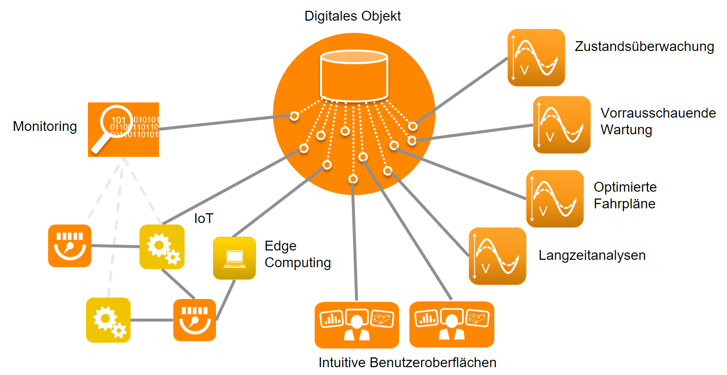 The digital object thus serves as the centrepiece of the digital twin and forms the basis for a variety of applications, which can be connected to the digital object in the form of services to utilize the information. These services are designed to perform specific tasks, functions, services, or interactions with the digital twin or the real object. The use case and purpose of the digital twin defines, which data must be available in the digital object and which services are to be used.