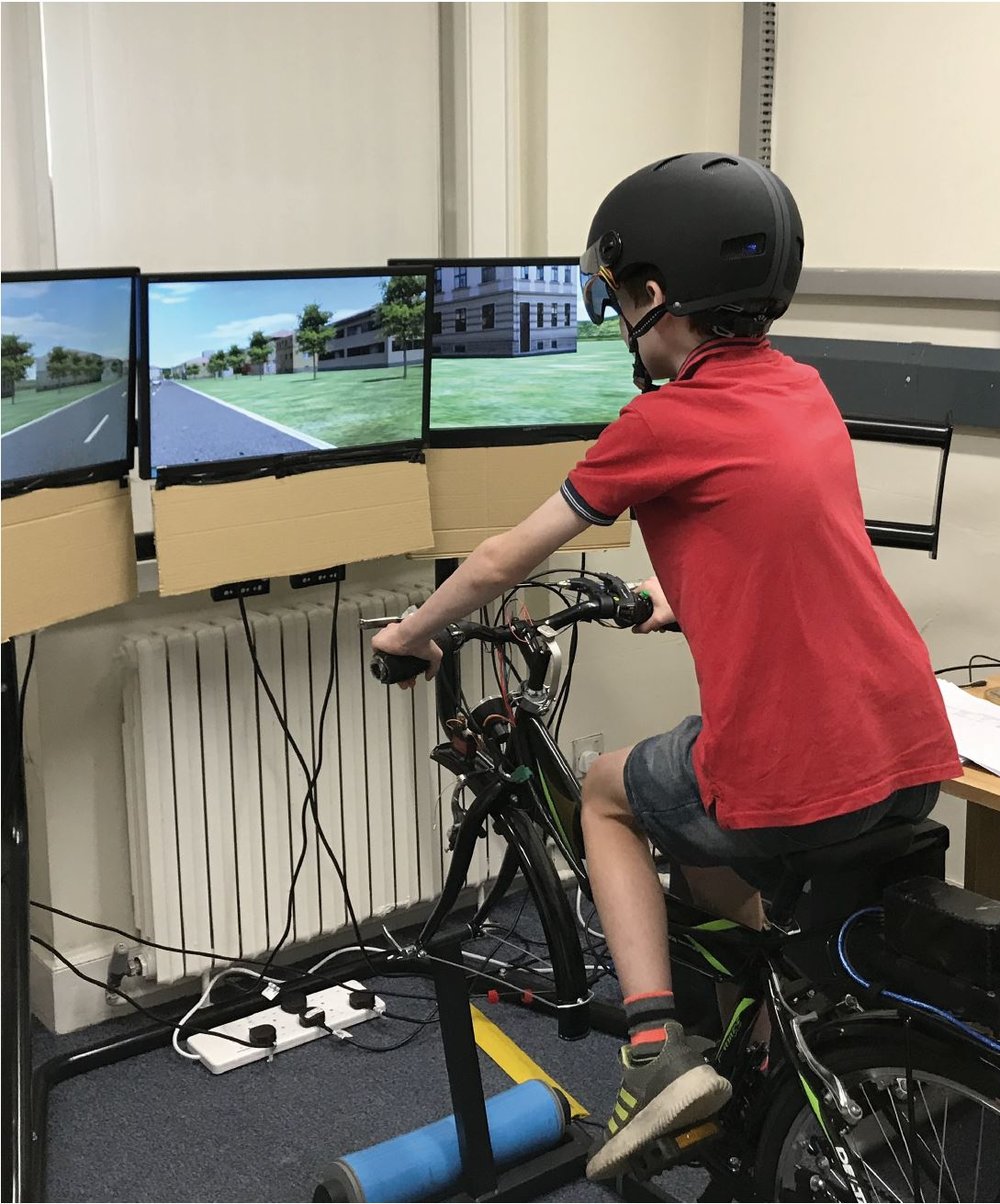In the project Safety4Bikes, the Interactive Systems group of the OFFIS Health division was concerned with the development and investigation of multimodal interaction concepts for bicycle helmets and bicycles. Warnings and hints are adapted to the situation by means of the peripheral field of vision, fade-ins in augmented reality helmets, as well as by acoustic and tactile signals, without distracting the child from the actual driving task. Our project partner - the department "Assistance Systems and Medical Technology" of the University of Oldenburg - developed new methods for the detection of dangers in the environment and driving behaviour. The developments were continuously tested with children: initially in the laboratory and then on a traffic practice area.