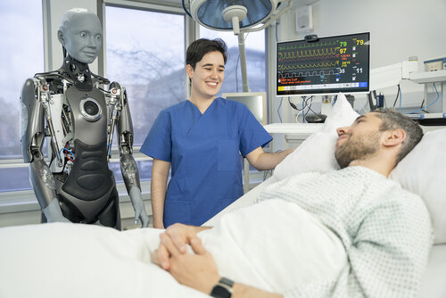 Ameca, the new colleague, smiles, jokes, talks and, above all, helps wherever she can on the nursing station: Repositioning patients, lifting them out of wheelchairs or accompanying them to the bathroom. Especially now, when the number of old and sick people is particularly high and there is a shortage of nursing staff, she is a great help. Furthermore, she never gets tired or weak, is always motivated, and she - or he, or it? - doesn't have to sleep either. Because Ameca is a robot.