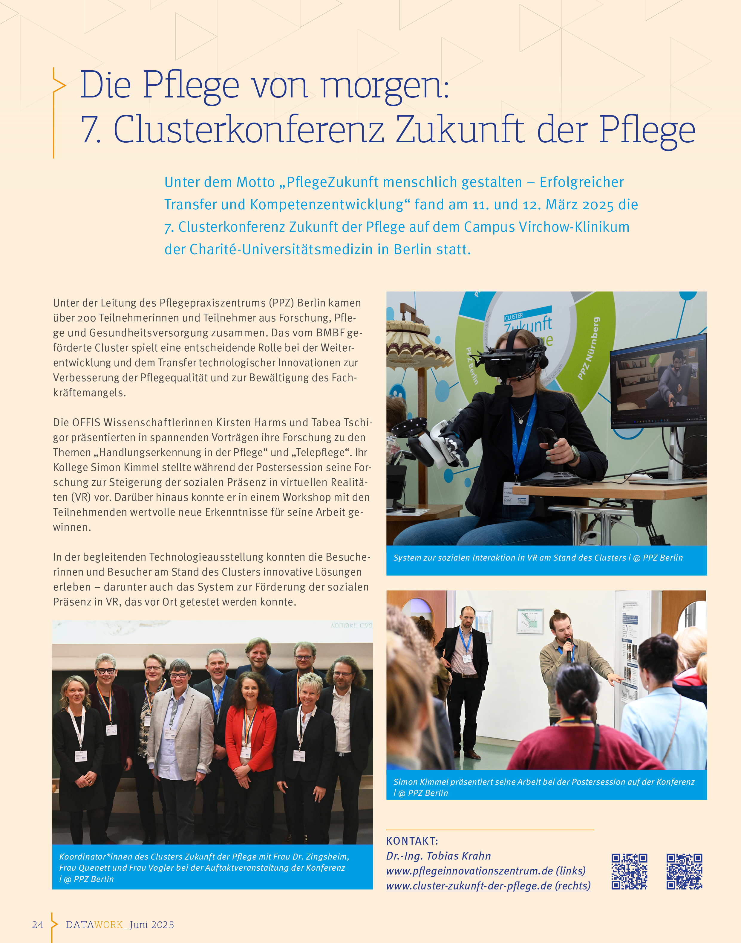 Our in-house magazine Datawork addresses current issues of our daily work, people showing behind the scenes and thus the entire range and diversity of OFFIS. It appears twice a year in print and as a PDF file - only available in German.