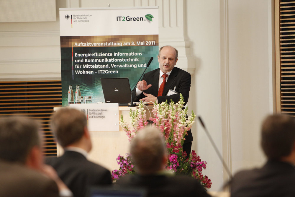 Am 03. Mai 2011 fand im Bundesministerium für Wirtschaft und Technologie in Berlin die Auftaktveranstaltung "IT2Green - Energieeffiziente IKT für Mittelstand, Verwaltung und Wohnen" statt. Immer mehr Menschen nutzen Computer, Mobiltelefone und internetbasierte Dienste intensiv und treiben so den Stromverbrauch kontinuierlich in die Höhe.Das Ministerium fördert mit dem Programm "IT2Green" innovative Modellprojekte, die den Energiebedarf von Informations- und Kommunikationstechnologien (IKT) in Rechenzentren, Telekommunikationsnetzen sowie Büro- und Heimanwendungen senken sollen. OFFIS ist an dem im Themenkomplex "Rechnenzentren und Clouds" angesiedelten Projekt "AC4DC" beteiligt, das bei der Auftaktveranstaltung von Koordinator Bernd Hanstein der Firma Rittal vorgestellt wurde. Das Projekt wird zum 01.06. starten und hat zum Ziel, den Betrieb eines IKT-Systems bestehend aus Nutzern, Endgeräten (PCs), Rechenzentren, Datennetzen und Energieversorgern ganzheitlich hinsichtlich Energieverbrauch und Kosten zu optimieren.