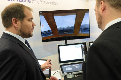 Shaping the future of e-Navigation - das war das Motto des Messeauftritts von OFFIS auf der NorShipping (www.norshipping.com) in Oslo. Das Messeteam um Dr. Rainer Droste hatte wirklich Neues im Gepäck: Aus Oslo wurde mit der landseitigen Schiffsbrücke des Messepartners das Forschungsboot Zuse auf der Fahrt von Wilhelmshaven nach Cuxhaven gesteuert. In der norwegisch-deutschen Kooperation wurden wichtige Bestandteile für autonomes Fahren auf See konzipiert und in Oslo der Öffentlichkeit präsentiert.