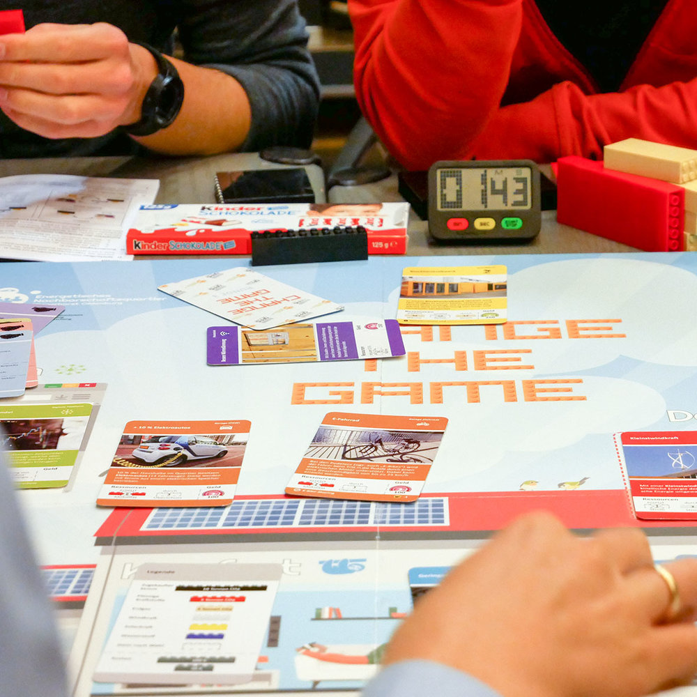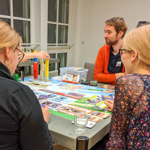 Am 29. Oktober nahmen 18 motivierte Oldenburger*innen die Klimaschutz-Challenge des Projektteams ENaQ - Energetisches Nachbarschaftsquartier Fliegerhorst Oldenburg an. Die Challenge bestand darin, in drei Gruppen das Brettspiel „Change the Game“ zu gewinnen, wobei die Gruppen im direkten Vergleich gegeneinander antraten. Die Spieler*innen schlüpften in die Rolle einer Projektleitung, welche ein nachbarschaftliches Quartier ganz nach ihren eigenen Maßstäben gestalten konnte.