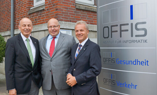 Peter Altmaier, Bundesminister für Umwelt, Naturschutz und Reaktorsicherheit, besuchte am 15. August 2013 Oldenburg. Neben einem Empfang im Rathaus und Besuchen im Forschungszentrum NEXT ENERGY und im EWE-Forum Alte Fleiwa stand auch das OFFIS - Institut für Informatik auf der Agenda.