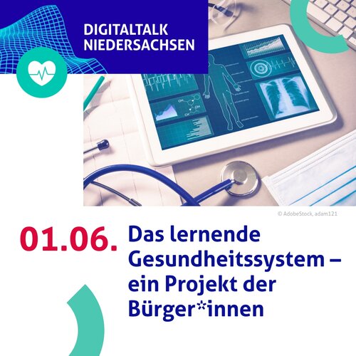 Der „Digitaltalk Niedersachsen“ ist zurück: Am 01.06.2022 lädt das Zukunftslabor Gesundheit zur nächsten Ausgabe des interaktiven Diskussionsformates mit folgendem Thema ein: „Das Lernende Gesundheitssystem – ein Projekt der Bürger*innen“. Interessent*innen können ab 17:30 Uhr den Livestream auf dieser Seite verfolgen.