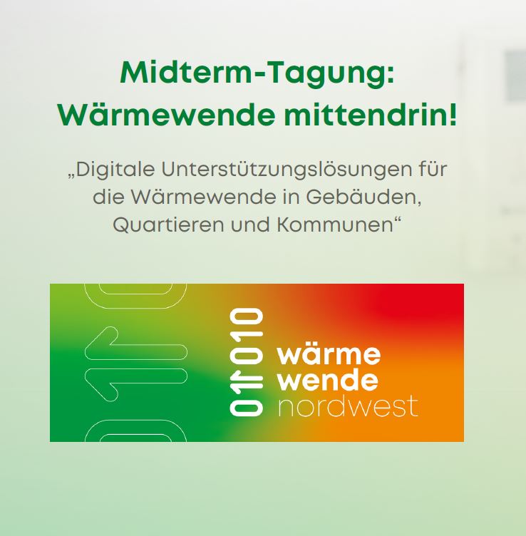 Daher möchten wir Sie im Namen des gesamten Konsortiums herzlich zur Midterm-Tagung am 17.04. im CORE in Oldenburg einladen. Rund um das Thema „Digitale Unterstützungslösungen für die Wärmewende in Gebäuden, Quartieren und Kommunen“ wollen wir Ihnen auf dem Markt der Möglichkeiten die bisherigen Ergebnisse aus dem Projekt vorstellen und mit Ihnen in den Austausch treten. Expert*innen aus Forschung und Praxis kommen zusammen, geben Einblicke in ihre Arbeit und diskutieren die drängenden Fragen rund um die Digitalisierung der Wärmewende.