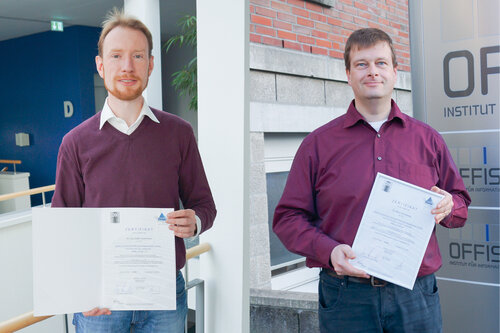 Unsere beiden OFFIS-Gruppenleiter Dr. Marco Eichelberg (Gruppe Automatisierungs- und Integrationstechnik) und Dr. Stefan Gudenkauf (Gruppe Datenmanagement und Datenanalyse) gehören seit kurzem dazu. Dr. Gudenkauf wurde erfolgreich im Level C und Dr. Eichelberg im Level B zertifiziert.