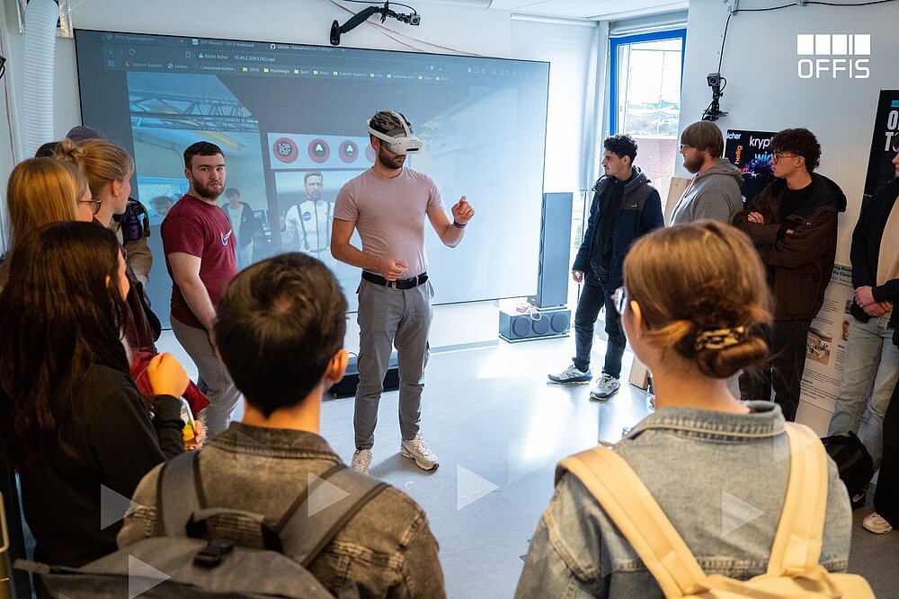 Im Anschluss gaben Kolleg*innen aus den OFFIS Forschungsbereichen sowie vom DLR spannende Einblicke in ihre Arbeit – von aktuellen Forschungsprojekten bis hin zu persönlichen Werdegängen und Karrierewegen. Bei Rundgängen durch Labore und Forschungsbereiche konnten die angehenden Informatiker*innen die Vielfalt der digitalen Forschung hautnah erleben.