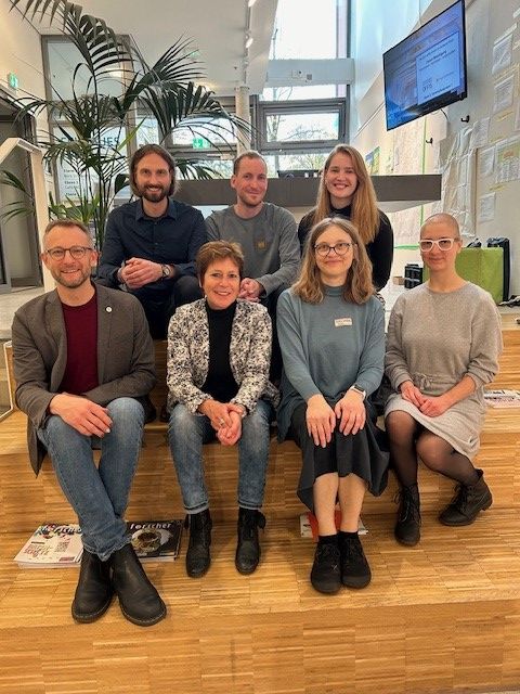 Sprachen über Bürgerbeteiligung: (hinten, von links) Moderator Jürgen Boese, Malte Schulz (OFFIS), Katharina Meiners von der Koordinierungsstelle Partizipation der Stadt Oldenburg, (vorne, von links) Roland Ronja Wehking (Geschäftsführung Institut für Partizipatives Gestalten), Bürgermeisterin Christine Wolff, Dr. Maria Wolters (OFFIS) und Lena Wiggers (Partnerschaften für Demokratie). Foto: Stadt Oldenburg