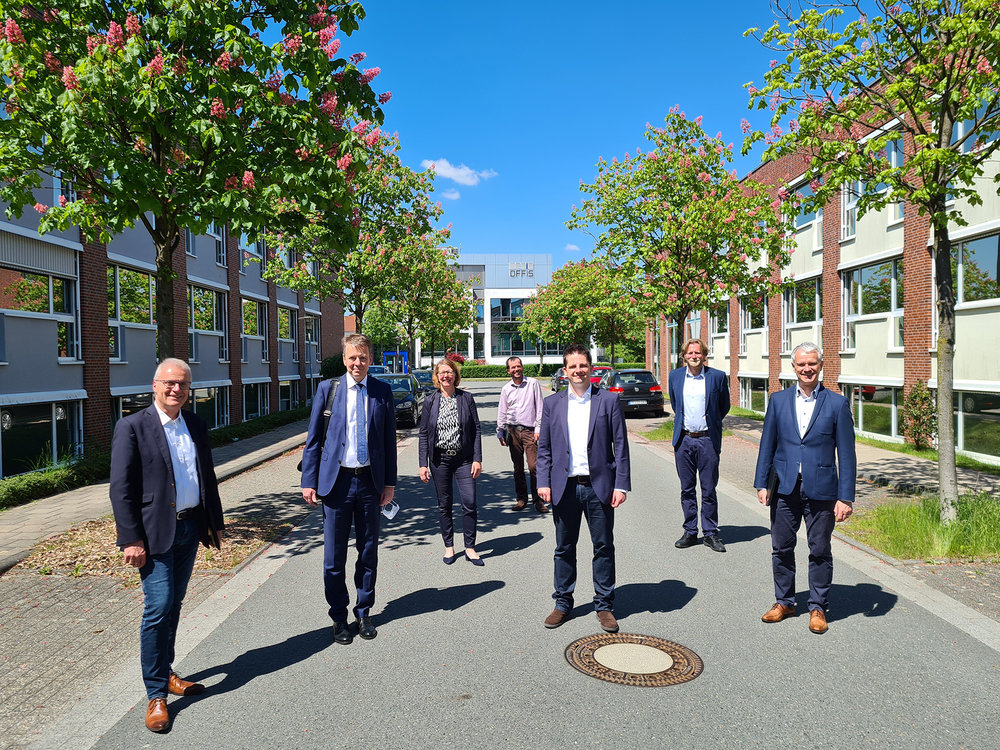 Am 1. Januar 2022 übernimmt Dr. Torsten Slink die Hauptgeschäftsführung der Oldenburgischen IHK. Ende Mai nutzte er schon einmal die Chance, dem OFFIS einen persönlichen Besuch abzustatten. Die sinkenden Corona-Zahlen in Oldenburg ermöglichten diesen unter der strengen Einhaltung aller Hygiene- und Abstandsregelungen. Zudem wurden alle Beteiligten im Vorfeld des Termins negativ auf das Corona-Virus getestet.