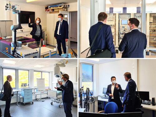 Empfangen von den Vorstandsmitgliedern und Geschäftsführer Dr. Holger Peinemann wurde Dr. Slink unter der Leitung des Vorstandsvositzenden, Prof. Dr. Sebastian Lehnhoff, durch das Institut geführt und mit den vier Forschungs- und Entwicklungsbereichen vertraut gemacht.