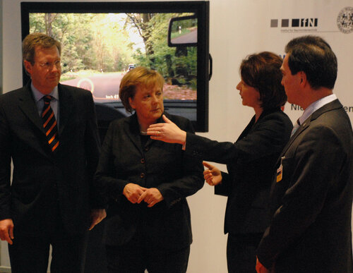 Beim heutigen Treffen der deutschen Informations- und Telekommunikationstechniker mit den Top-Managern aus Wirtschaft, Politik und Wissenschaft ging es um die Stärkung des IT-Standorts Deutschland im internationalen Wettbewerb. Gastgeberin und Schirmherrin Dr. Angela Merkel informierte sich vor Ort über zukunftsweisende Strategien und neue Lösungsansätze - so auch über die Forschungsinitiative von OFFIS Oldenburg und den niedersächsischen Hochschulen Hannover und Braunschweig in Zusammenarbeit mit Volkswagen.