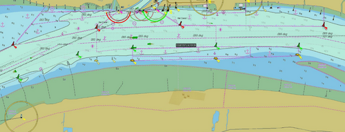 Beispielhafte Abbildung der Integration der landseitigen Radarinformationen auf eine elektronische Seekarte der PPU.