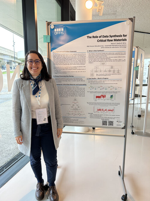 Das Poster von Maria Davila befasst sich mit der Rolle der Datensynthese bei kritischen Rohstoffen. Eines der Hauptprobleme in der heutigen Forschung ist der Mangel an Daten, der auch die Kritikalitätsforschung betrifft. Davila schlug mit ihrem Poster-Beitrag künstliche Daten als Lösung für dieses Problem vor. Bisher nur als Konzept vorgestellt, sollen bald erste Ansätze in bestehenden Projekten in der Automobil- und Luftfahrtindustrie folgen.