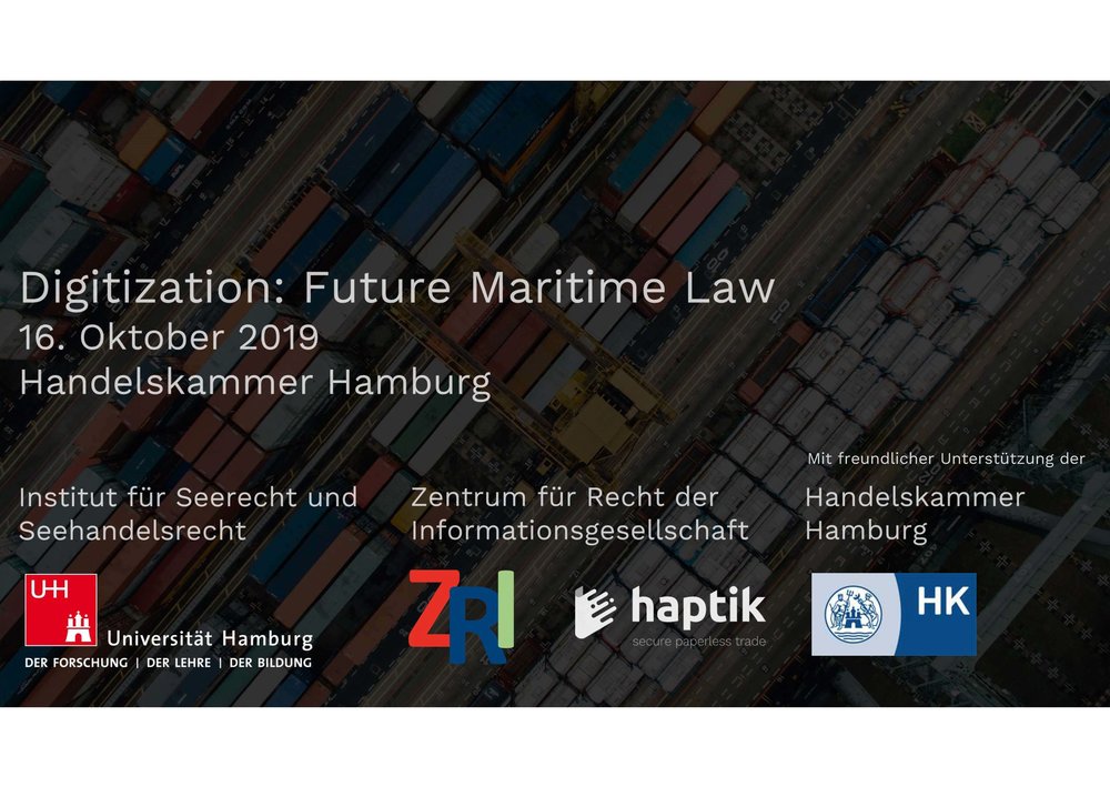 Bei der Veranstaltung "Digitization: Future Maritime Law", zu der das Institut für Seerecht und Seehandelsrecht der Universität Hamburg und das Interdisziplinäre Zentrum für Recht der Informationsgesellschaft der Universität Oldenburg mit freundlicher Unterstützung der Handelskammer Hamburg am 16. Oktober 2019 von 14:30 Uhr bis 19:00 Uhr einladen, haben die Teilnehmenden Gelegenheit, in die maritime Wirtschaft der Zukunft einzutauchen. Unter anderem wird PD Dr. Sibylle Fröschle aus dem OFFIS-Bereich Verkehr im Rahmen des Projektes haptik - secure paperless trade einen Vortrag zum Thema"Cyber Security im maritimen Kontext" halten.