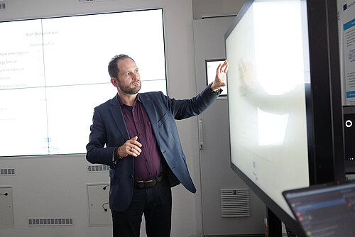 Im Rahmen der Demonstration war die vollständige Verarbeitungskette erlebbar: Eine mosaikbasierte Co-Simulation speiste Daten aus der Mittel- und Niederspannungsebene – basierend auf einer Netztopologie für die Stadt Bremerhaven – über virtualisierte Fernwirkgeräte und Smart-Meter-Gateways in die Plattform ein. Das HMI zeichnet die Topologie automatisch auf einer geografischen Karte und zeigt für ein ausgewähltes Betriebsmittel gemessene, geschätzte und prognostizierte Werte nebeneinander an. Zeitreihen visualisieren Spannungsverläufe und Leistungsflüsse.