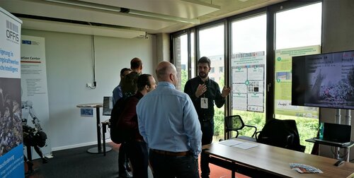 OFFIS war am zweiten Tag im Rahmen des Mittelstand-Digital-Zentrums Bremen-Oldenburg gemeinsam mit dem BIBA (Bremer Institut für Produktion und Logistik) mit jeweils einem Demonstrator vertreten. Tobias Hoiten und Nils Kollmann vertraten den Bereich Produktion des Instituts und präsentierten Ergebnisse aus dem Projekt AVKIN, in dem die Effizienz in einem Abfallverbrennungskraftwerk durch KI gesteigert werden konnte. Dabei wurde KI zur Bilderkennung eingesetzt. Der Demonstrator stieß sowohl bei den Schüler*innen als auch bei den Fachbesucher*innen auf positive Resonanz und diente als Inspirationsquelle für zukünftige industrielle Anwendungen, auch für kleine und mittlere Unternehmen (KMU).