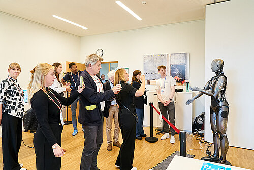 OFFIS präsentierte vor Ort praxisnahe Einblicke in laufende Forschungsprojekte, die zeigen, wie digitale Lösungen den Alltag älterer Menschen erleichtern und gesellschaftliche Teilhabe fördern können. Gezeigt wurden unter anderem eine Virtual-Reality-Anwendung zur Überbrückung räumlicher Distanzen zwischen den Generationen, ein digitaler Assistent für den Umgang mit Online-Behördendiensten sowie neue Ansätze für digitale Gesundheitsvorsorge und Beteiligung. Ein besonderes Highlight war der humanoide Roboter Ameca, der mit seiner menschenähnlichen Mimik und Gestik für große Aufmerksamkeit sorgte.