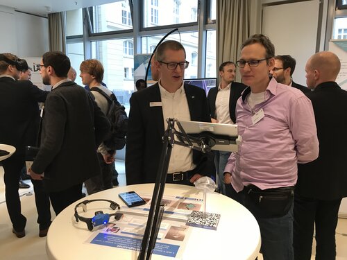 Mit unseren interaktiven Demos zu Virtual Augmented Reality in der Pflege, in der Produktion und der Mobilität kamen unsere Kollegen vor Ort - Dr. Wilko Heuten und Uwe Grünefeld - mit den Gästen aus Politik, Wirtschaft und Wissenschaft ins Gespräch.