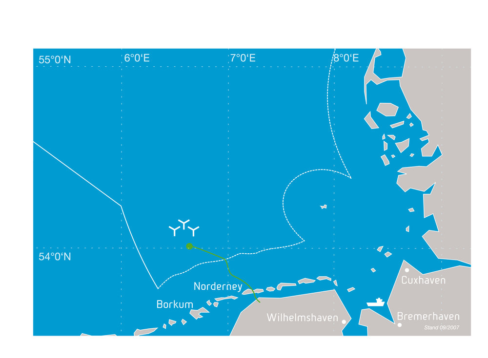 Gelegen ist der Offshore-Windpark ca. 45 km nördlich vor der Insel Borkum. Dort sollen insgesamt 12 Windenergieanlagen auf einer Fläche von ca. 4 km² und in einer Wassertiefe von mehr als 30 m errichtet werden. Gemessen von der Wasseroberfläche bis zur obersten Blattspitze besitzt jede der Windenergieanlagen eine Höhe von ca. 150 m und ist damit fast so hoch wie der Kölner Dom. Die drei großen deutschen Energieversorgungsunternehmen E.ON, EWE und Vattenfall haben sich zusammengeschlossen, um das Projekt gemeinsam voranzutreiben.