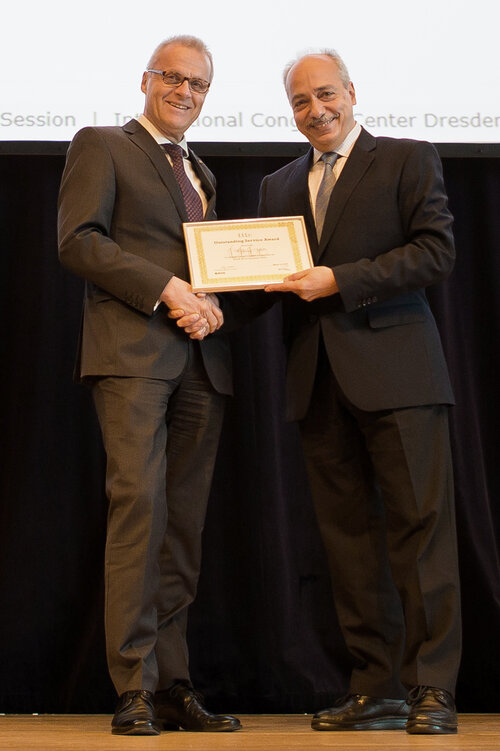 Prof. Dr.-Ing. Wolfgang Nebel, OFFIS-Vorstandsvorsitzender und Hochschullehrer am Department für Informatik der Universität Oldenburg, wurde heute mit hochkarätigen Auszeichnungen des Institute of Electrical and Electronics Engineers (IEEE) geehrt. Vom IEEE Council on EDA (IEEE CEDA) erhielt er den „Outstanding Service Award“ sowie vom IEEE Computer Society Test Technology Technical Council (IEEE CS TTTC) den „Outstanding Contribution Award". Der Oldenburger Informatiker wurde damit für seine besonderen Verdienste für das IEEE ausgezeichnet. Der internationale Berufsverband mit Sitz in New York hat Nebel die Auszeichnung bei der Eröffnung der Design, Automation and Test in Europe Konferenz (DATE) in Dresden verliehen.