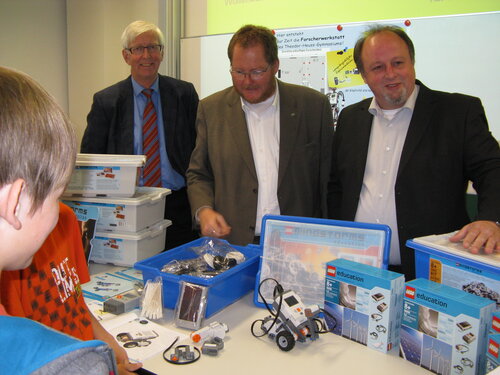 Am 31. Mai 2013 waren nun Matthias Brucke für OFFIS und Dipl. Ing. Götz Anspach von Broecker für Astrium ST nach Wolfenbüttel gekommen, um den THG einen Klassensatz des Robotik Baukastens „LEGO Mindstorms“ zu überreichen. Zunächst einmal sollen sich die THG-Schülerinnen und Schüler mit den Baukästen vertraut machen, ehe sie sich im kommenden Schuljahr einer von den Projektpartnern gestellten Aufgabe stellen müssen. Die Begeisterung der Schüler über diese einzigartigen Möglichkeiten ist riesengroß. Durch diese Zusammenarbeit werden den naturwissenschaftlichen Fächern neue Perspektiven ermöglicht.