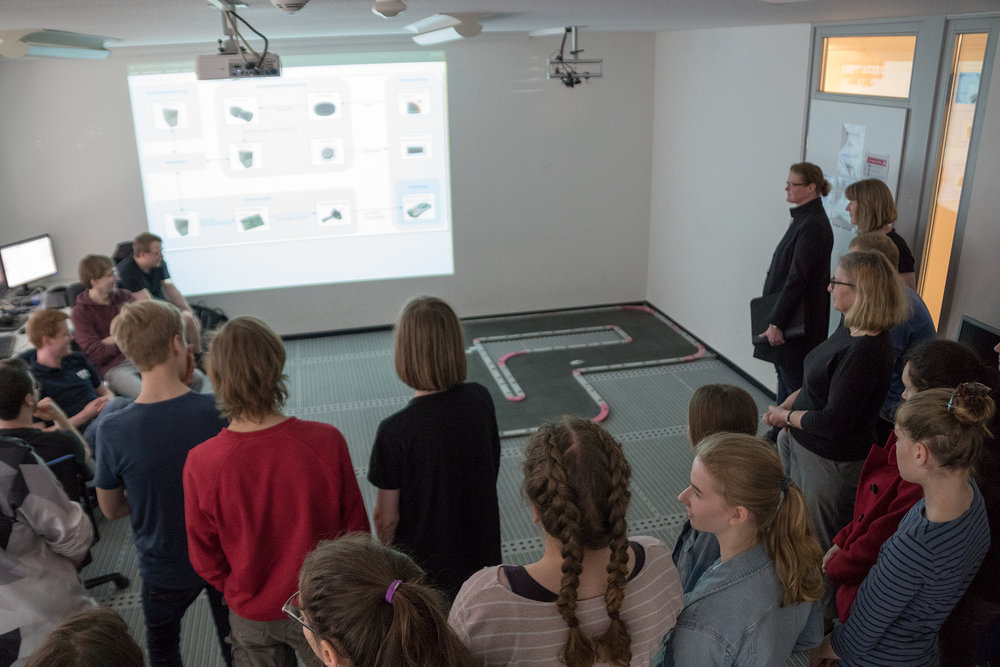Zwei Projekte wurden vorgestellt: unsere Gruppe Kooperierende Mobile Systeme zeigte die mobile Schiffsbrücke und die Projektgruppe RCCARS-ng (https://www.uni-oldenburg.de/rccars/) zeigte ihre Arbeiten rund um das Thema "Autonomes Fahren". Alle Exponatbetreuer mussten viele interessierte Fragen beantworten und hatten eine Menge Spaß mit den Schülerinnen und Schülern.