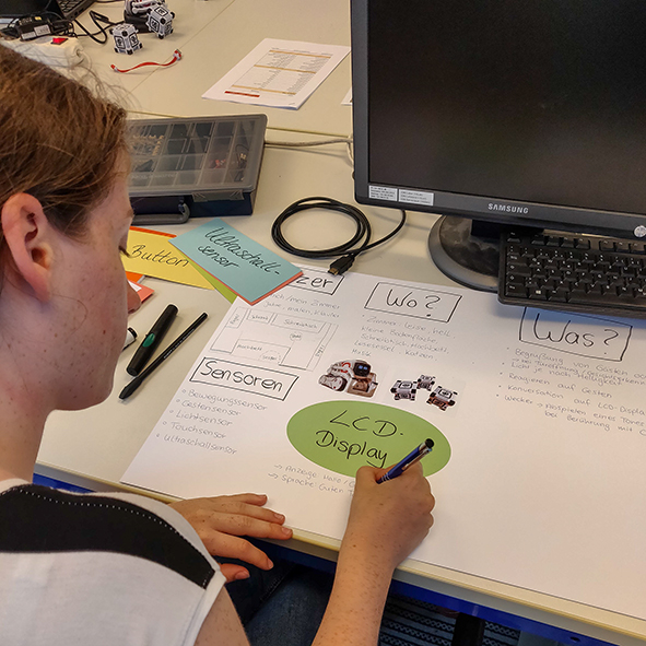 Wer letzte Woche bei uns im Institut über die Flure ging, hörte etwas für ein Informatikinstitut durchaus nicht Alltägliches: Mädchengelächter. Der Name unseres Projektes "smile" war wieder mal Programm! Das Projekt veranstaltete einen mehrtägigen Workshop für Schülerinnen zum Thema "Upgrade your room with a little robot", in dem sie die Gelegenheit hatten, ein interaktives System für ihr Zimmer zu entwickeln. Der kleinen Roboter "Cozmo" konnte dabei als Assistent eingesetzt werden, der Sensoren hat und auch mit Emotionen auf bestimmte Situationen reagieren kann. Cozmo kann auch Reden und Melodien abspielen und die Teilnehmerinnen fanden viele kreative Einsatzmöglichkeiten für ihn. Im Video fungiert Cozmo zum Beispiel als Wecker - lassen Sie sich überraschen!