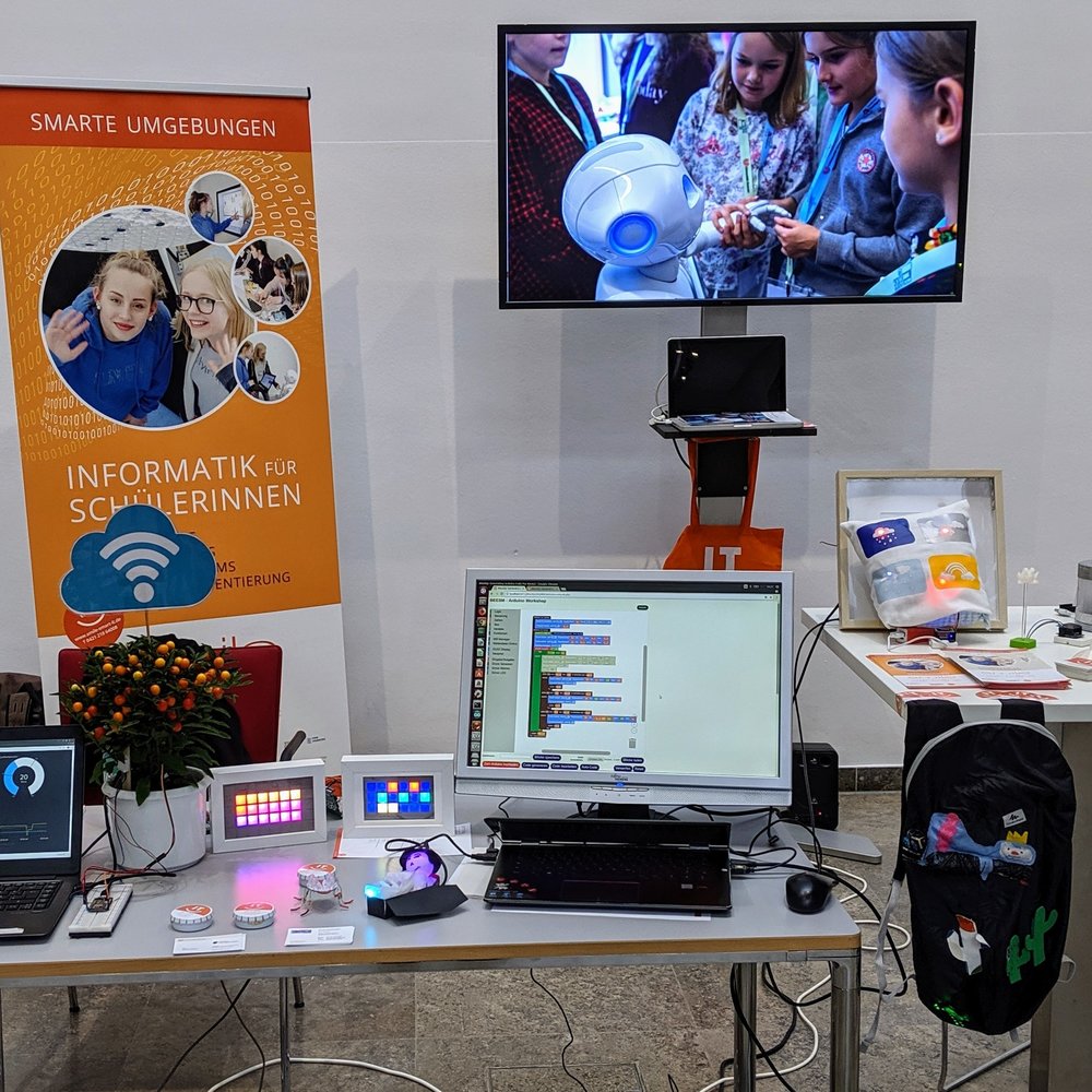 Unser Projekt smile (https://www.smile-smart-it.de/) hat sich am 11. und 12. November 2019 erfolgreich auf der MINT-Transfertagung „Erfolg mit MINT – Karrieren gestalten, Potenziale entfalten“ des Bundesministeriums für Bildung und Forschung (BMBF) präsentiert. Der Parlamentarische Staatssekretär, Dr. Michael Meister, MdB, hob in seiner Rede smile als Beispiel besonders gelungener MINT-Arbeit hervor. Unser Kollege Serge Autexier (DFKI Bremen) berichtete über die Projekt-Ergebnisse und auf dem smile-Stand gab es Technik zum Anfassen, Ausprobieren und "MINTmachen". Ein sehr gelungener Auftritt des Projektes, das noch bis Ende März 2020 läuft.
