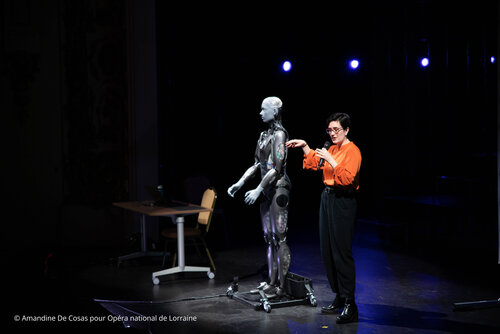 Diese und viele weitere Fragen sind Teil einer Kooperation des OFFIS mit dem Oldenburgischen Staatstheater, die Kunst und Wissenschaft in vielfältigen Projekten verschmelzen lässt. Im Rahmen dieser Zusammenarbeit packten unsere Kolleginnen Celia Nieto Agraz (Wissenschaftlerin) und Ameca (robotische Assistenz) im Februar ihre Koffer und reisten ins französische Nancy, um Teil der Oper "Die Schöpfung" zu werden.