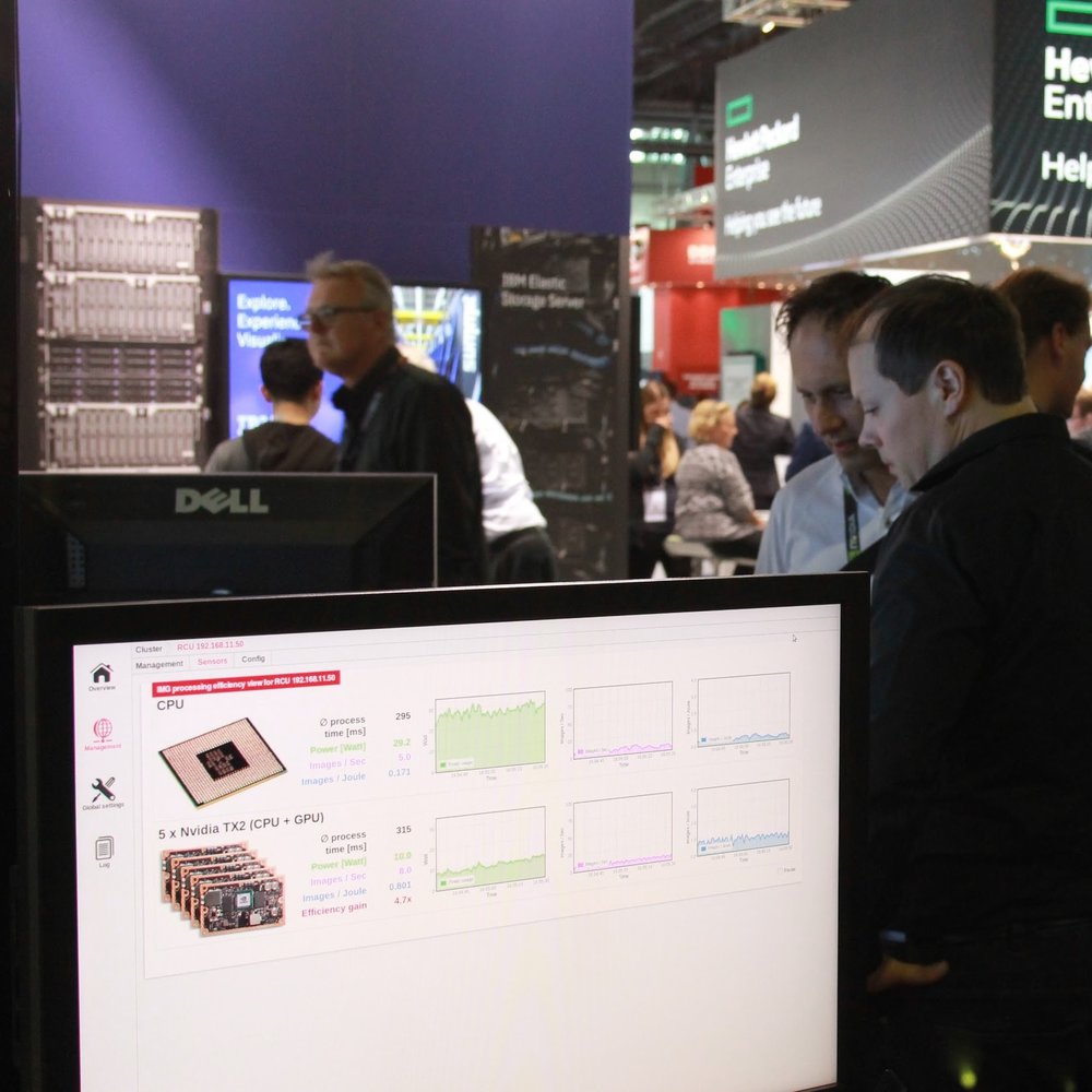 The M2DC team was part of the most important HPC events this Summer - the Forum Teratec in Paris (300 visitors/2 days) and the ISC-HPC in Frankfurt (250 visitors/2 days). Both are major industrial events in HPC in Europe, with ISC-HPC being shaped on the SuperComputing in the USA. The M2DC team brought to the public the platform chassis were in mid a and large range versions. The system efficiency enhancements (SEE), one of the highlights of this novel and outstanding technology, were demonstrated at the booth.