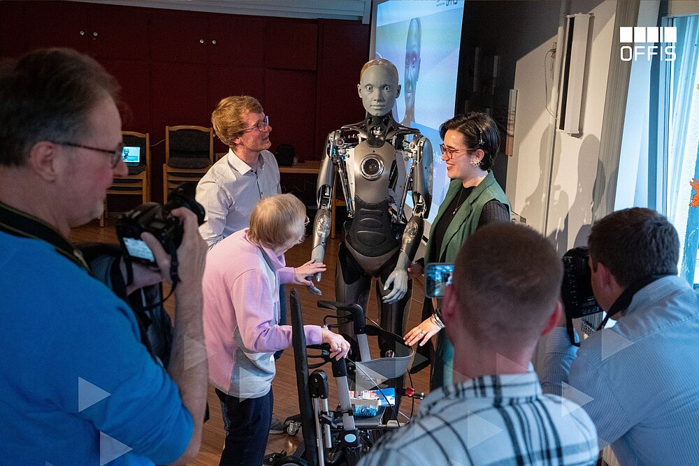 Wie reagieren ältere Menschen auf humanoide Roboter? Dieser Frage gehen die OFFIS Wissenschaftler*innen Celia Nieto Agraz und Dr. Björn Holtze in einer laufenden Studie nach – gemeinsam mit Ameca, einem der weltweit fortschrittlichsten humanoiden Robotersysteme.