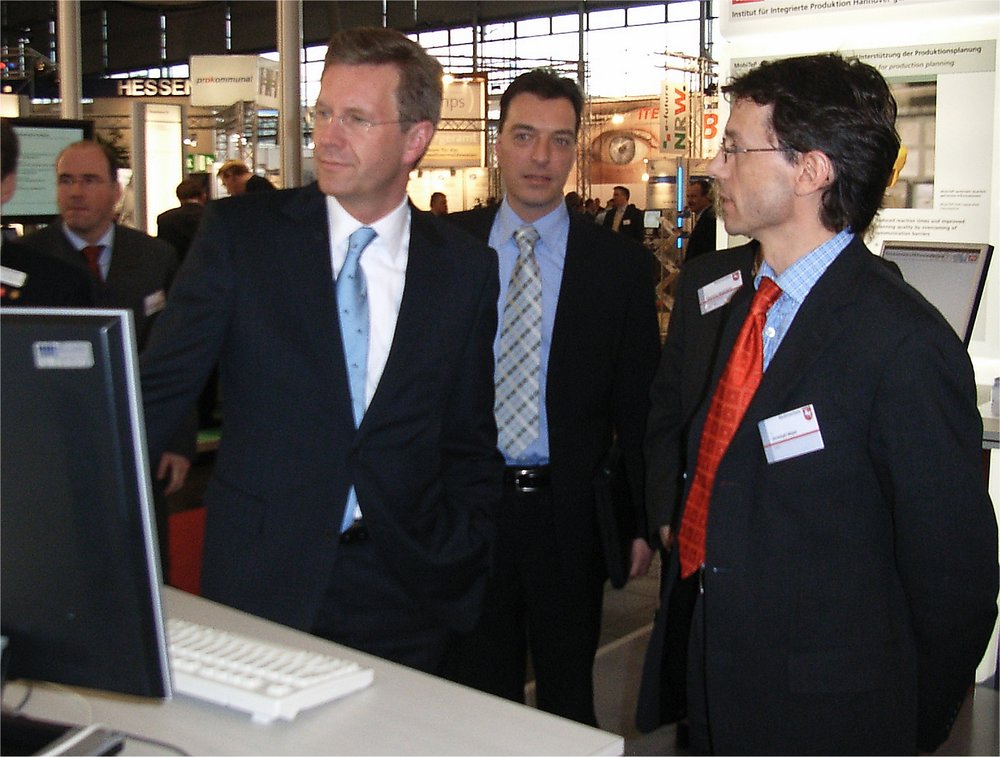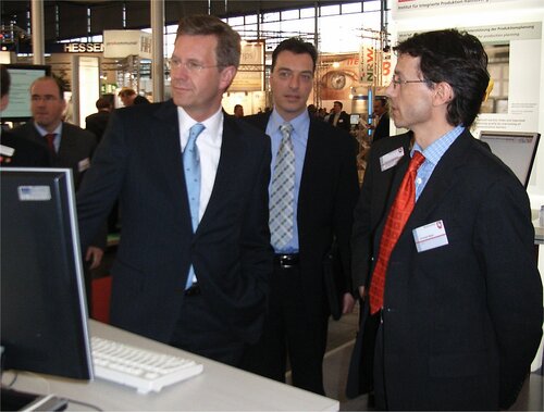 Hannover/Oldenburg. Im Rahmen seines CeBIT-Besuches informierte sich heute der niedersächsische Ministerpräsident Christian Wulff über die Arbeiten des Forschungsinstituts OFFIS im Bereich des dezentralen Energiemanagements.