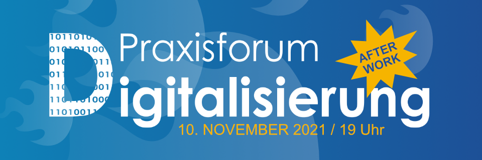 Am 10. November 2021, in der Zeit von 19.00 Uhr bis 21.30 Uhr, findet das Praxisforum Digitalisierung als After-Work-Ausgabe statt.