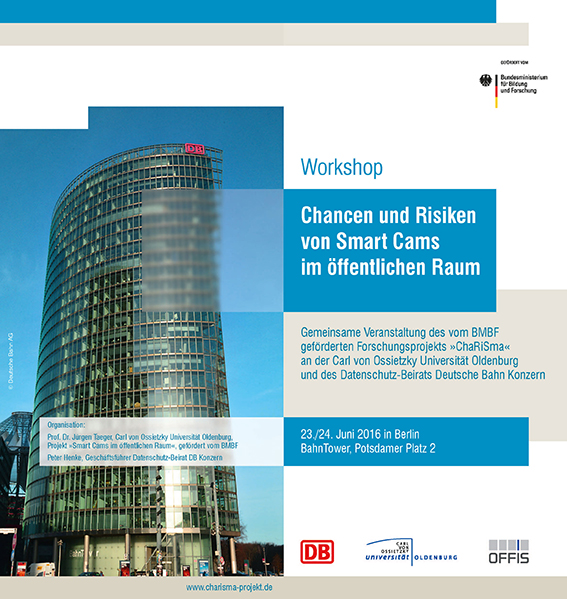 Workshop in Berlin mit Vorträgen zu Chancen und Risiken von SmartCams und Statements von Experten aus Wirtschaft und Politik zu den Perspektiven und zum Regulierungsbedarf - wir freuen uns auf spannende Diskussionen und den ein oder andern Blick hinter die Kulissen.